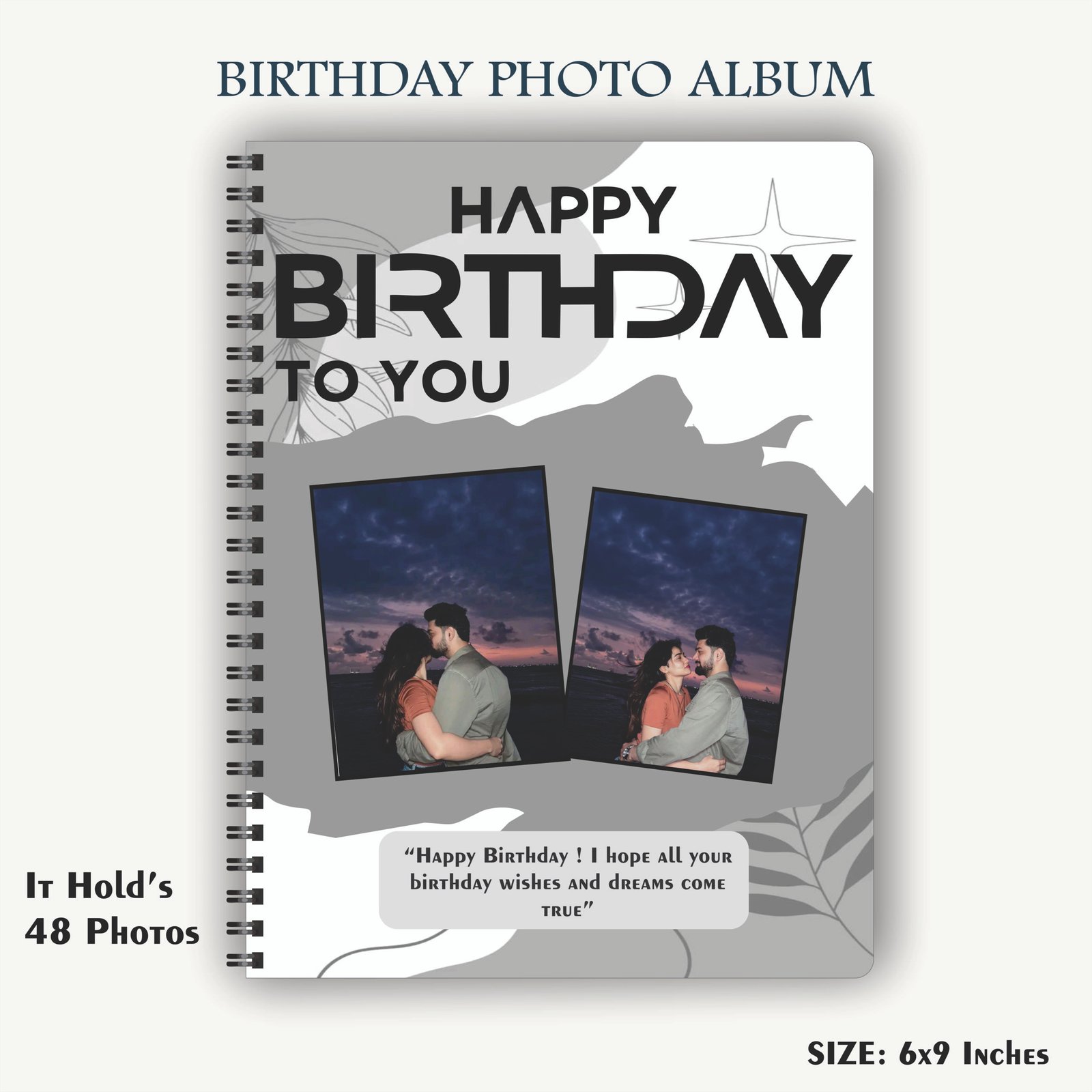 Elevate your memories with our Modern Monochrome Birthday Photo Album, featuring premium high-gloss photo paper for a professional, vibrant finish. This sleek 6×9-inch spiral-bound book offers a sophisticated minimalist design that perfectly showcases 48 of your most cherished moments. Whether it’s a romantic milestone or a collection of birthday highlights, the high-quality gloss pages ensure every detail shines, making it a stunning and durable keepsake that brings your digital photos to life.